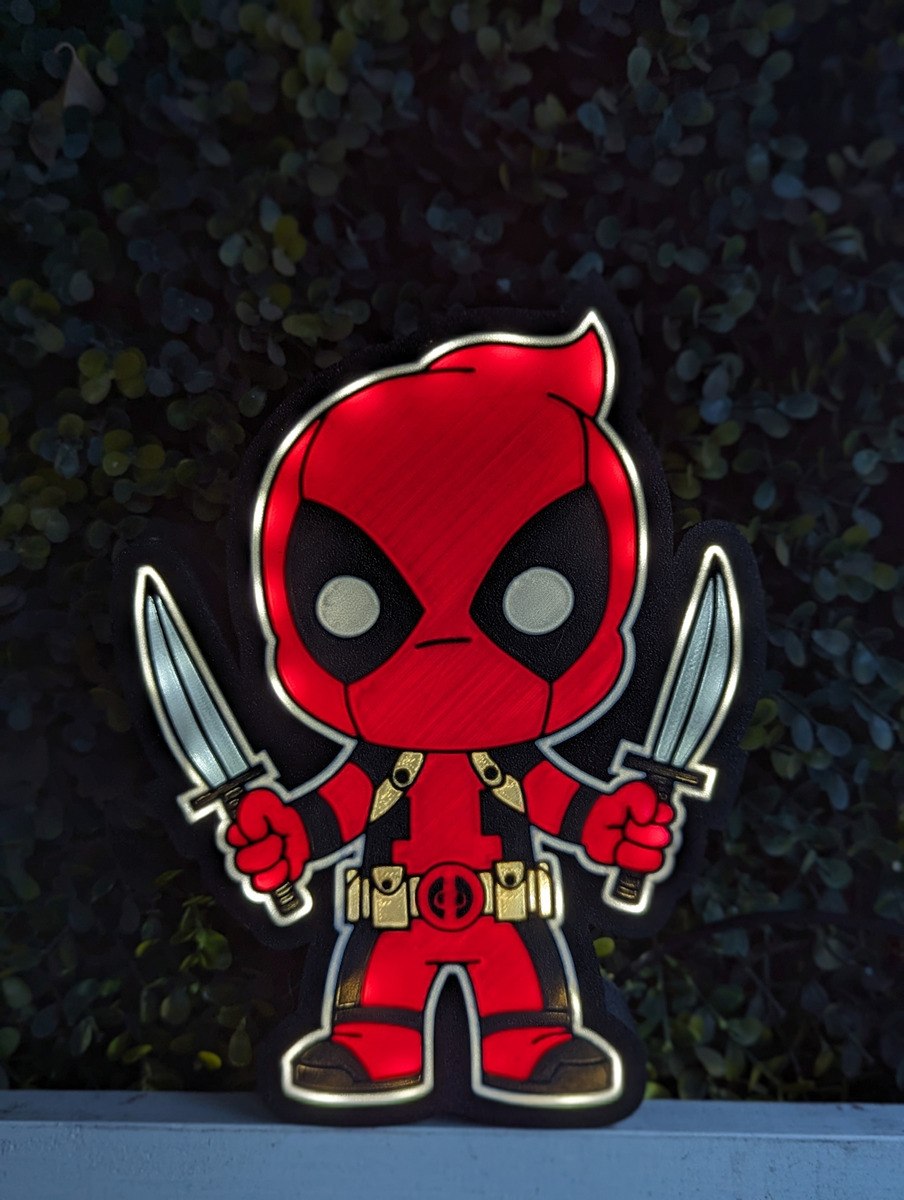 Lampara Velador Led 3d Deadpool Negro Blanco