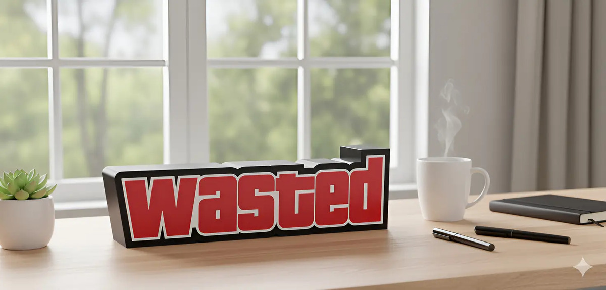 Lampara Velador Led 3d Gta Wasted Negro Blanco
