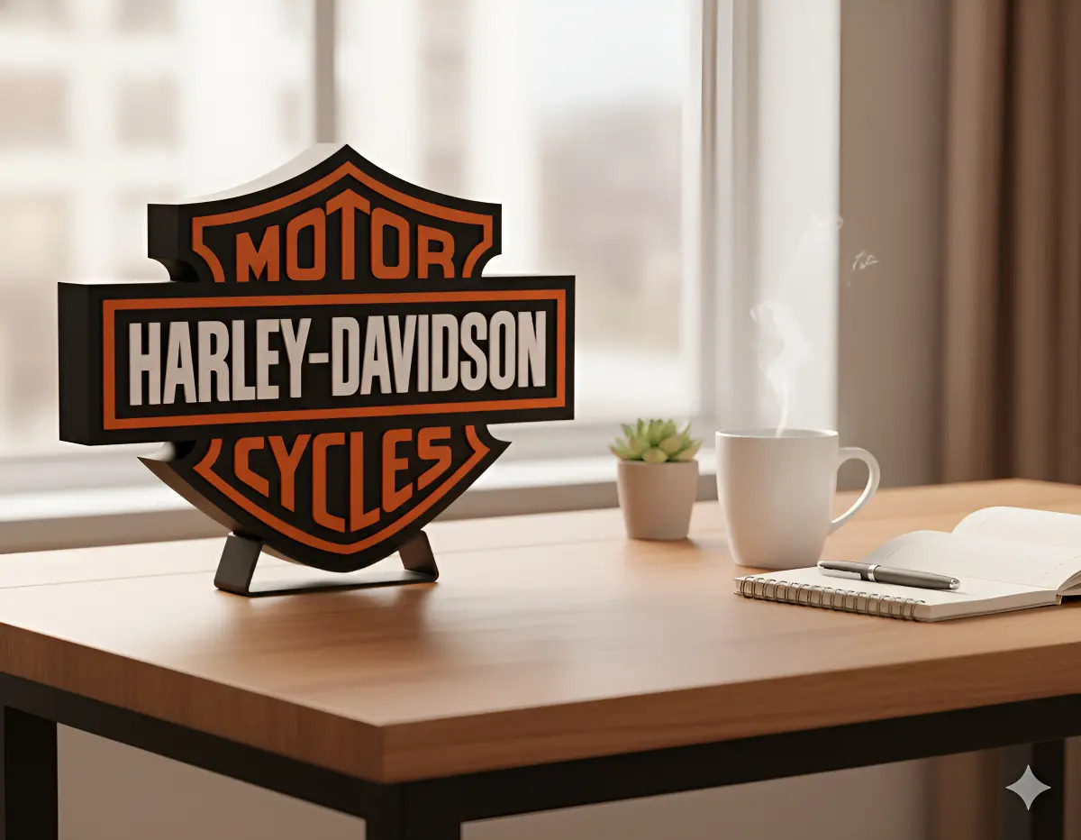 Lampara Velador Led 3d Harley Davidson Negro Blanco