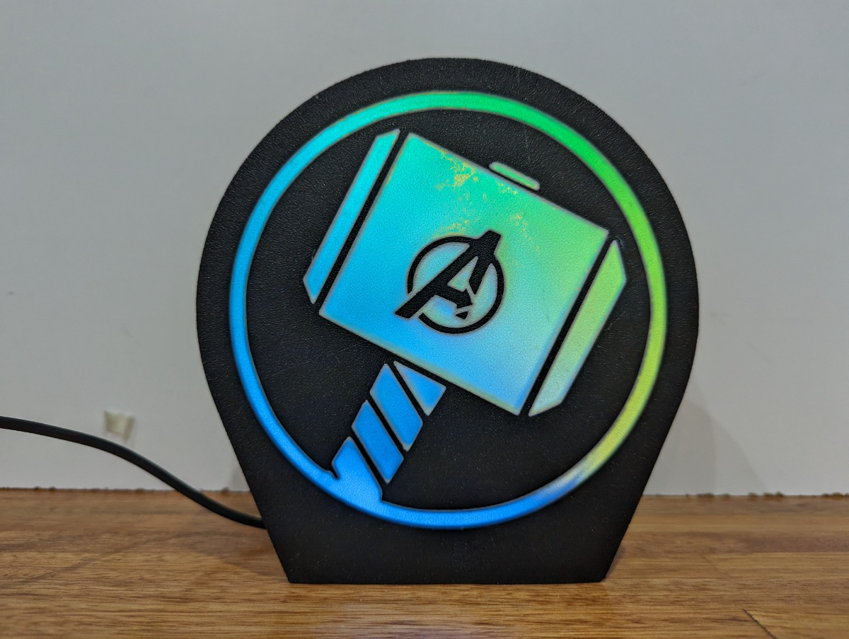 Lampara Velador Led 3d Martillo Thor Negro Blanco